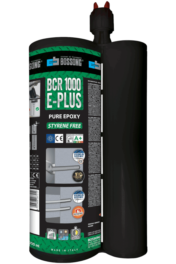 Ancorante chimico epossidico, nel formato 1000 ml, certificato per il fissaggio e per le riprese di getto post-installate con qualifica sismica. Adatto a carichi elevati e utilizzabile in presenza di foro allagato e fori carotati.