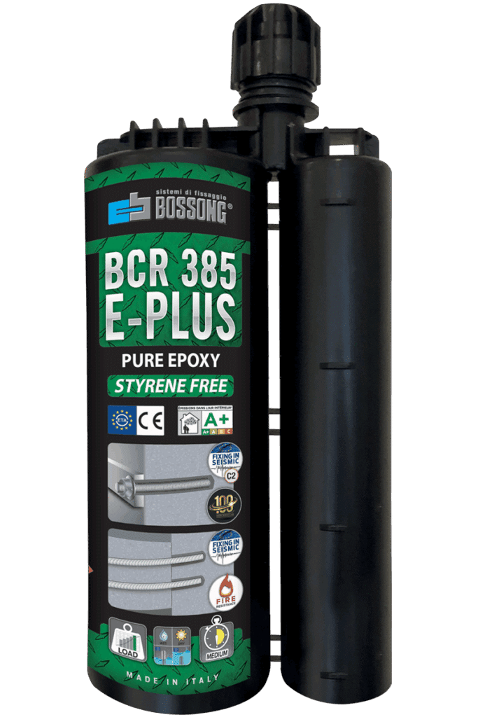 Ancorante chimico epossidico, nel formato 385 ml, certificato per il fissaggio e per le riprese di getto post-installate con qualifica sismica. Adatto a carichi elevati e utilizzabile in presenza di foro allagato e fori carotati.